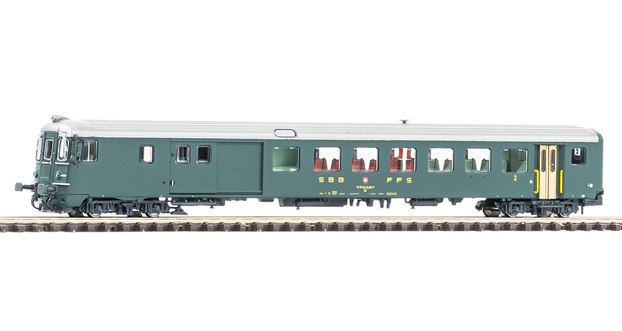 Ebenfalls in Kürze wird ein Modell des Steuerwagens vom Typ Bdt in den Handel kommen. Das Modell in grüner Farbgebung mit goldenen Türen trägt die alten Anschriften aus den frühen 1970er-Jahren. Der Fahrgastraum ist mit einer Inneneinrichtung ausgestattet und ist vorbereitet für eine Innenbeleuchtung (Art.-Nr.: 94362). Erhältlich im Fachhandel