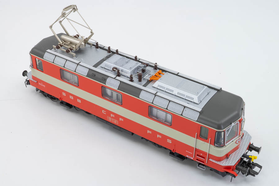 Passend zum 50zig-jährigen Jubiläum der Swiss Express-Züge kommt auch ein Modell der Re 4/4II in der auffälligen Grundfarbgebung Kieselgrau/Blutorange in den Handel (Art.-Nr.: 38420).