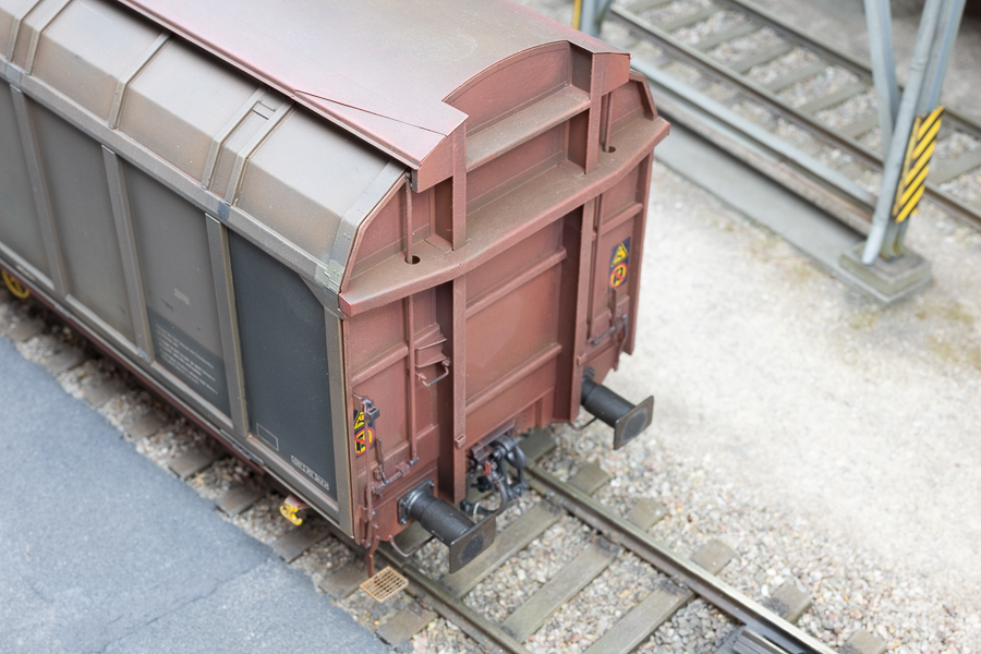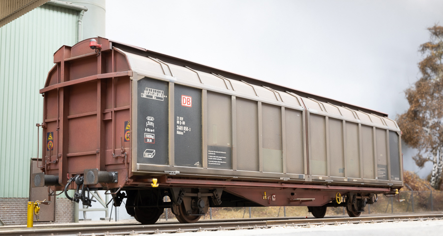 Das Messingmodell im Maßstab 1:32 überzeugt durch seine beeindruckenden originalgetreuen Dimensionen und durch das unauffällige „Brot-und-Butter“ Erscheinungsbild. Bei genauerer Betrachtung, zeigen sich Details wie die feinen Verstärkungsprofile, filigranen Regenrinnen und hauchdünnen Rangiertritte, welche nur in Messingbauweise so realistisch umsetzbar sind. Die starre Ausführung der Türen ermöglicht auch bei der Türmechanik und den Laufschienen die vorbildlichen Wandstärken. Die lupenreine Beschriftung sowie epochengerechte Anbauteile runden das Modell ab. Auch die beim Vorbild aufgetretene Verfärbung der Aluminiumtüren ist in den DB und PKP Modellen der Epoche VI dargestellt und erlaubt auch ohne nachträgliche Patinierung ein realistischeres Erscheinungsbild. Die Schiebewandwagen werden in 14 verschiedenen Varianten angeboten. Darunter befinden sich diverse Ausführungen der DB (Deutschland), der SBB (Schweiz) aber auch der PKP (Polen). Ebenso gibt es ein exklusives Sondermodell des InterCargoExpress für BMB (Bees Modellbahn).