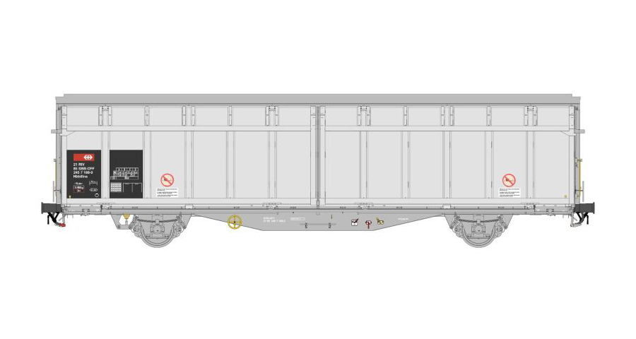 Hbbillns – Epoche IV / V Aufbau grau mit silbernen Türen, Fahrgestell grau Schwarze Felder mit SBB Logo