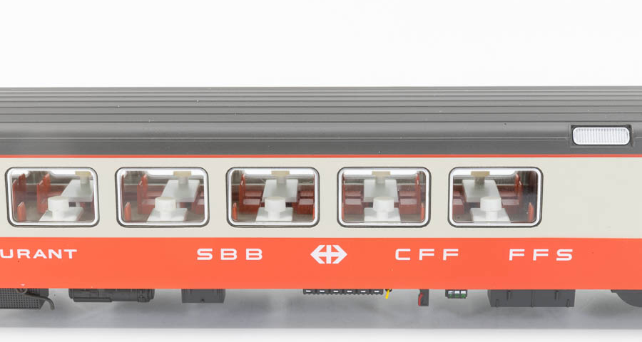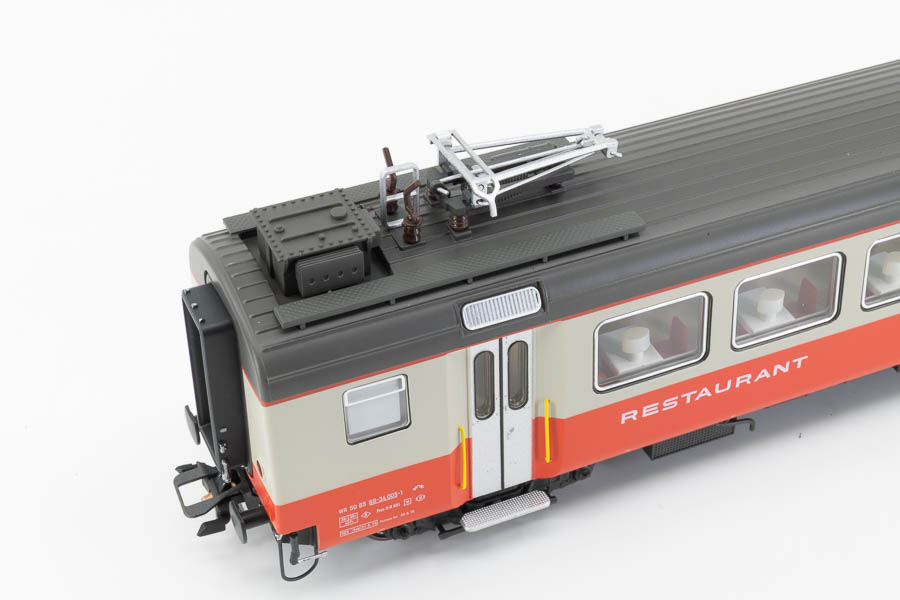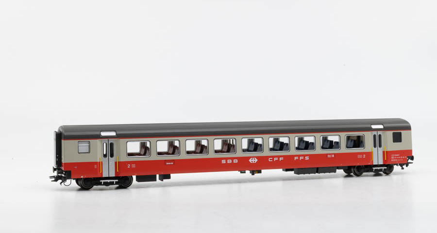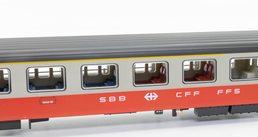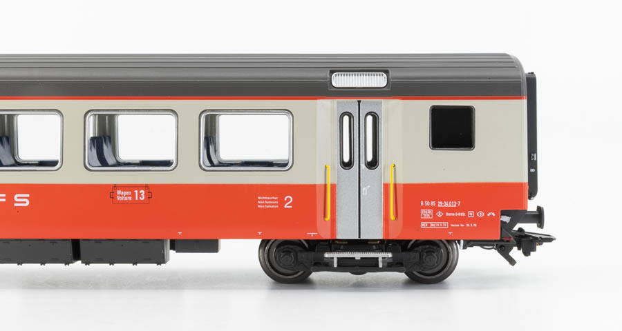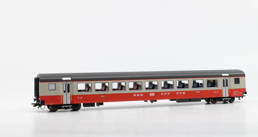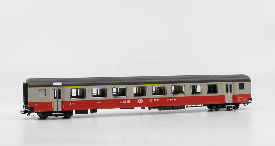 Zum 50zig-jährigen Jubiläum der Swiss Express-Züge liefert Märklin gerade noch rechtzeitig vor Weihnachten 2025 das vierteilige Wagenset (Art.-Nr.: 42190) an den Fachhandel aus. Es enthält vier Einheits-Personenwagen Typ EWIII der SBB im Betriebszustand ab 1975. Enthalten ist eine Halbgepäckwagen Bauart AD, 1. Klasse, ein Speisewagen Bauart WR und zwei Großraumwagen Bauart B, 2. Klasse. Die Wagen sind in der auffälligen Grundfarbgebung Kieselgrau/Blutorange gehalten. Die Zuglaufschilder geben den Zuglauf: Genève–Lausanne–Bern–Zürich HB an. Die Wagen tragen die Ordnungsnummern 1, 13 und 14. Der Speisewagen ist vorbildrichtig ohne Ordnungsnummer beschriftet.