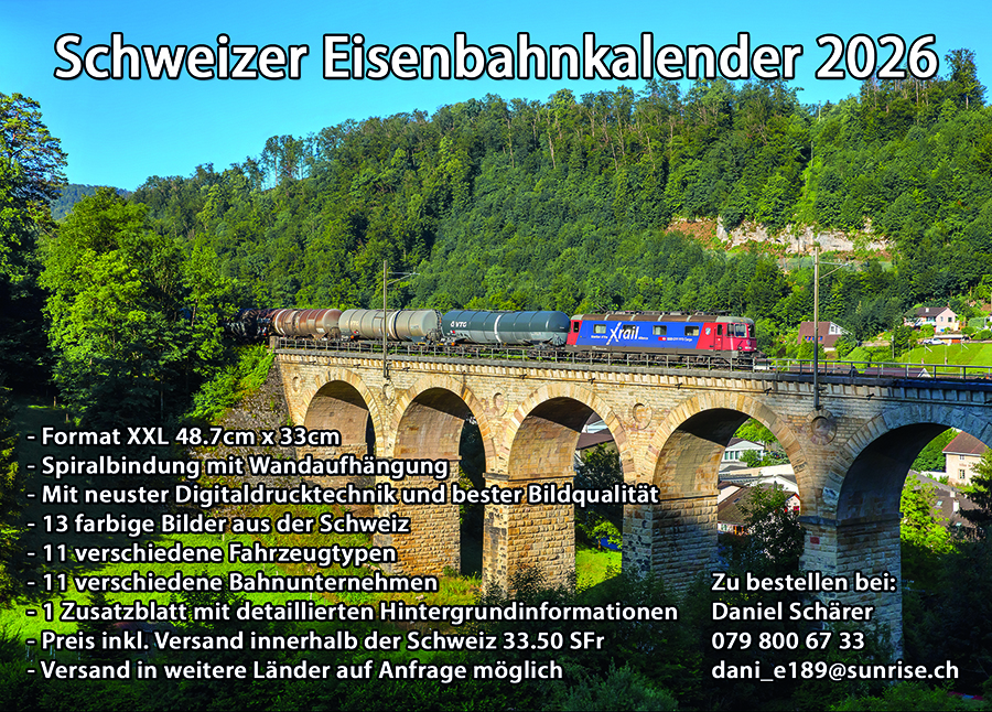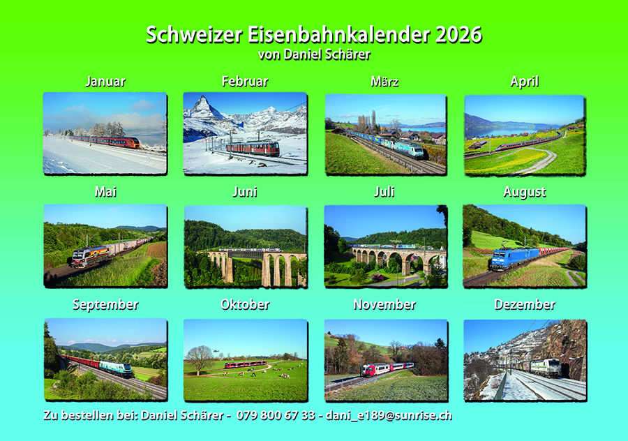 Aktuell erhältlich und direkt bestellbar beim Fotografen ist der neue Eisenbahnkalender für das Jahr 2026 von Daniel Schärer.